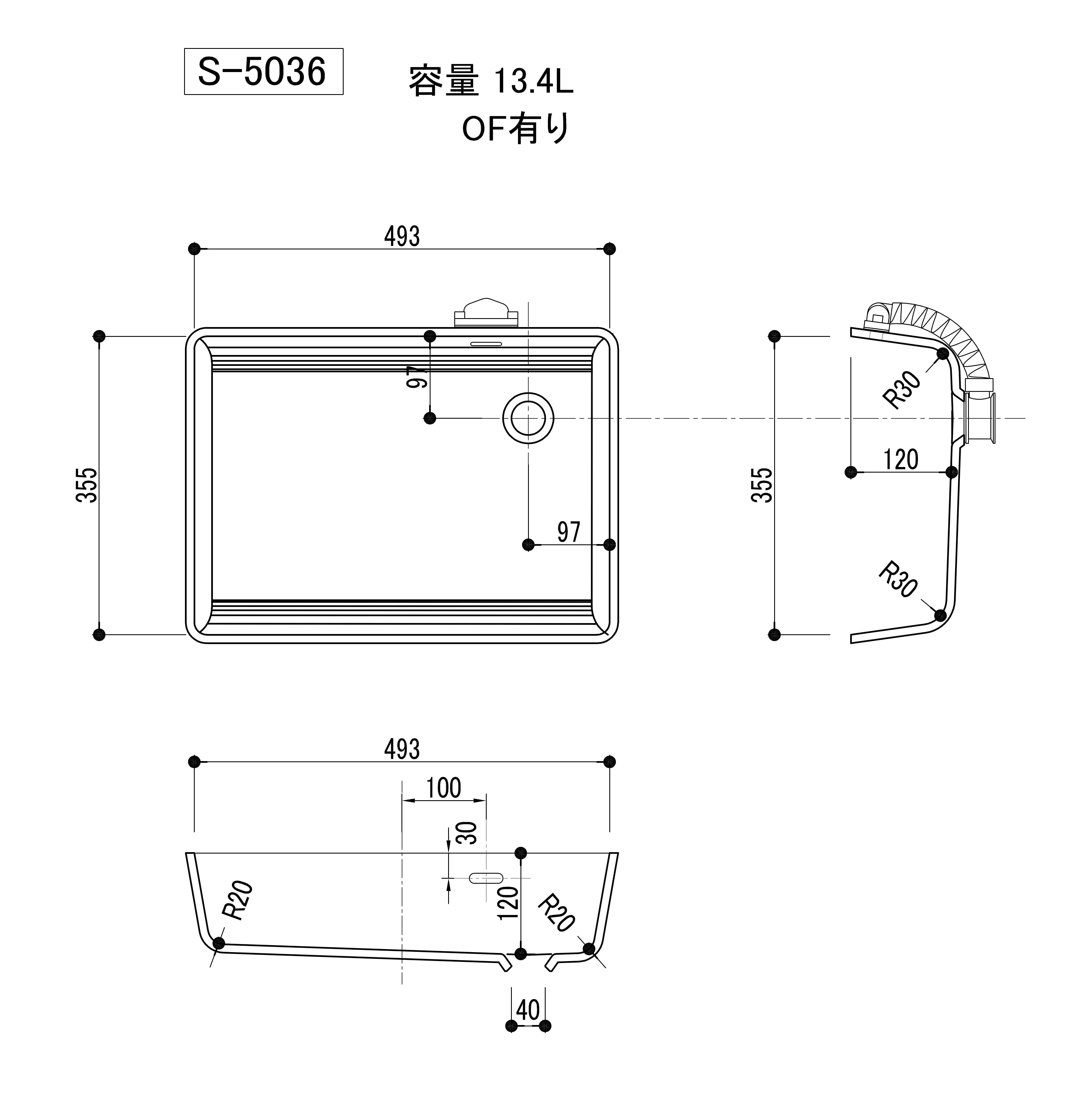 注型によるアクリル系シンクです。